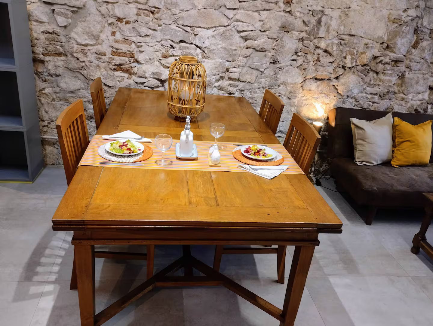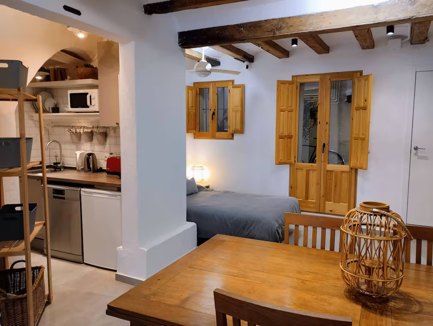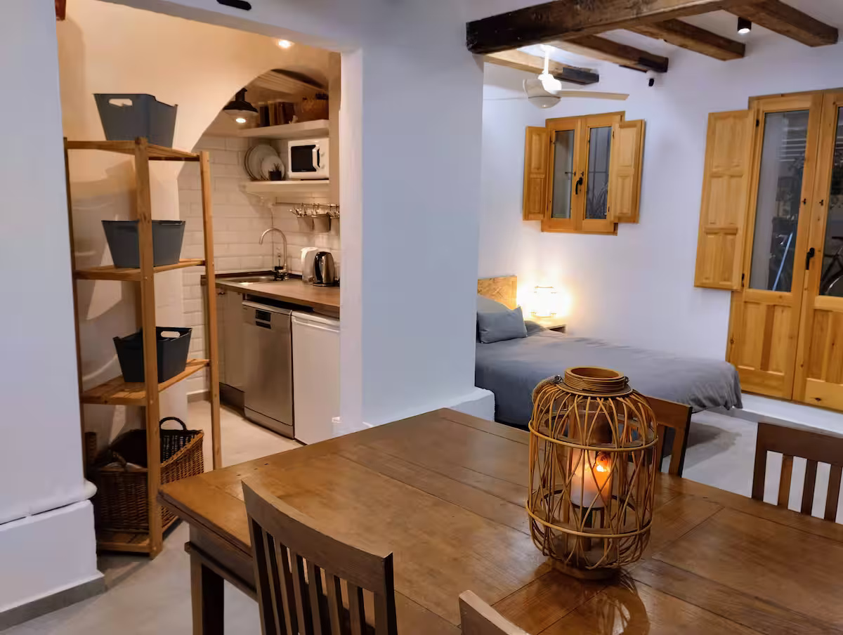 Located on a ground floor, with 40m2 plus patio, double bed, storage area, Smart TV, convertible living room, dining and work area. Equipped open kitchen and patio.